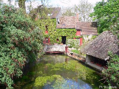 La première photo est le moulin de Glaires, côté rue, il abrite une entreprise de Pisciculture qui fit la réputation de la truite de Méréville. (on peut même les pêcher !)