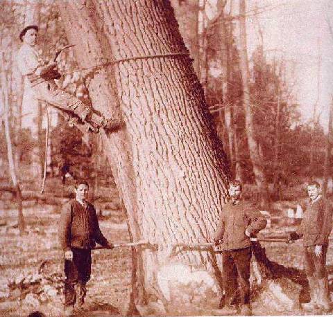 suivants laissèrent peu à peu le domaine à l'abandon. Un certain M.Carpentier y laissera un souvenir tristement célèbre, dilapidant les trésors du Parc pour se remplir les poches. Il méritait bien qu'on l'immortalise (Doc. F.d'Ormesson, à gauche) fier d'un de ses méfaits: l'abattage du plus beau chêne de la région.