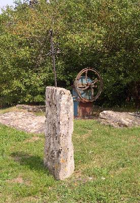 Il y avait donc ici, une chapelle et un petit cimetière seigneurial. Si la croix actuelle date de 1858, le fer forgé serait beaucoup plus vieux, et la pierre réutilisée.